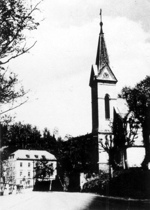 Marienkirche, dahinter die 8-klassige Volksschule