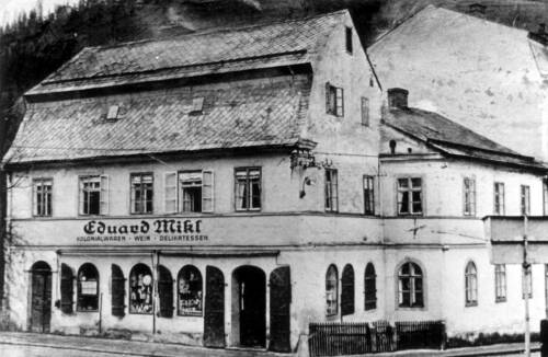 Mikl-Kaufladen , Häuser Nr. 18 und 53. Beide Häuser fielen 1946 der Begradigung der Straße zum Opfer.