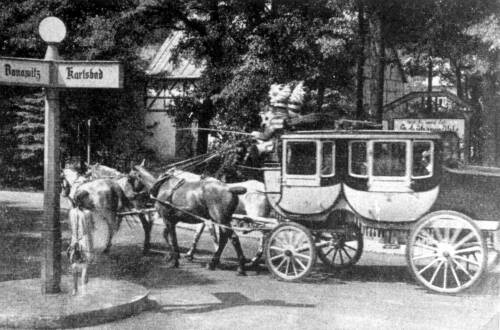 Die Karlsbader Postkutsche vor der Schützenmühle im Jahre 1939
