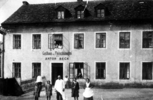 Haus 12 mit Gasthaus und Fleischhauerei von Anton Beck neben dem Zinnbach.